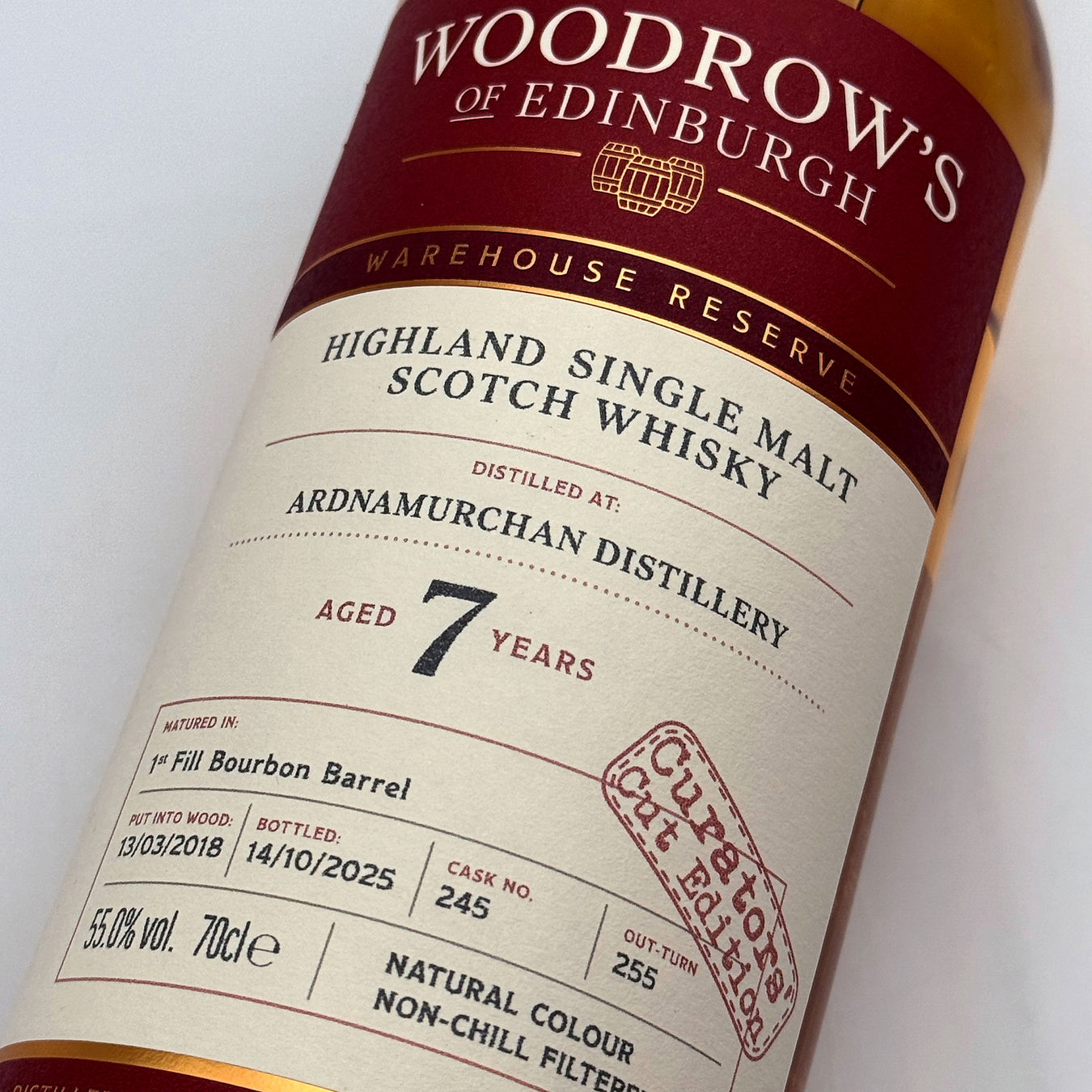 Distilled in 2018 and bottled by Woodrow’s of Edinburgh, this 7 year old Ardnamurchan was drawn from a 1st fill bourbon barrel (Cask #245), yieldin...