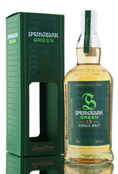 Springbank Green, a 12 year old bourbon cask matured Campbeltown single malt whisky. A limited edition release, created from organic barley (hence ...
