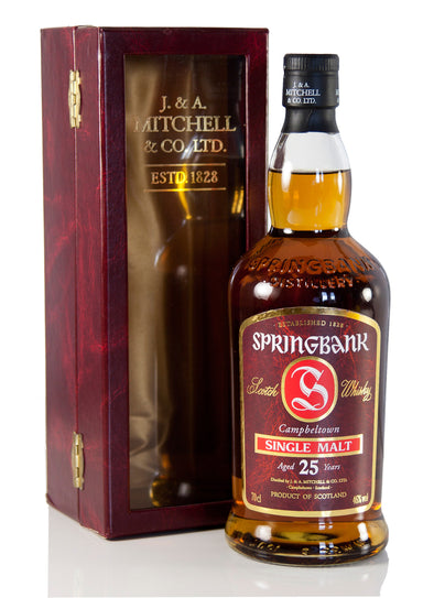 A 25 year old Springbank which has been created from two casks, one bourbon and one sherry. These were then transferred to a fresh port cask and ma...