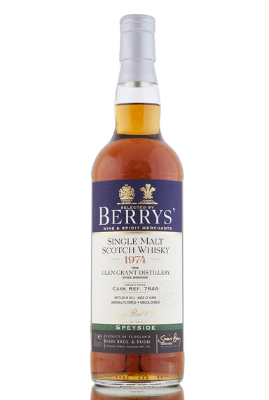 Speyside Single Malt Scotch WhiskyBerry Bros & Rudd Glen Grant 1974, aged in single cask 7643 for 37 years before being bottled at natural cask...