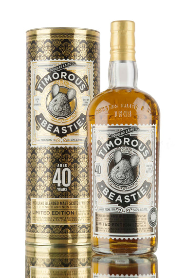 A 40 year old, limited edition version of the original Timorous Beastie! 1080 bottles of this Highland blended malt Scotch whisky released at 54.7%.