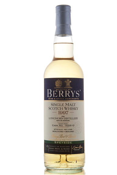 Speyside Single Malt Scotch Whisky Berry Bros & Rudd Single cask 163310 from the Longmorn Distillery, laid to rest in 1997 and aged for 14 yea...