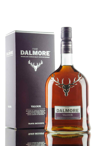Dalmore Valour is a unique blend of three different types of cask finishes. Initially matured in first fill ex-bourbon casks and 30 year old Matusa...