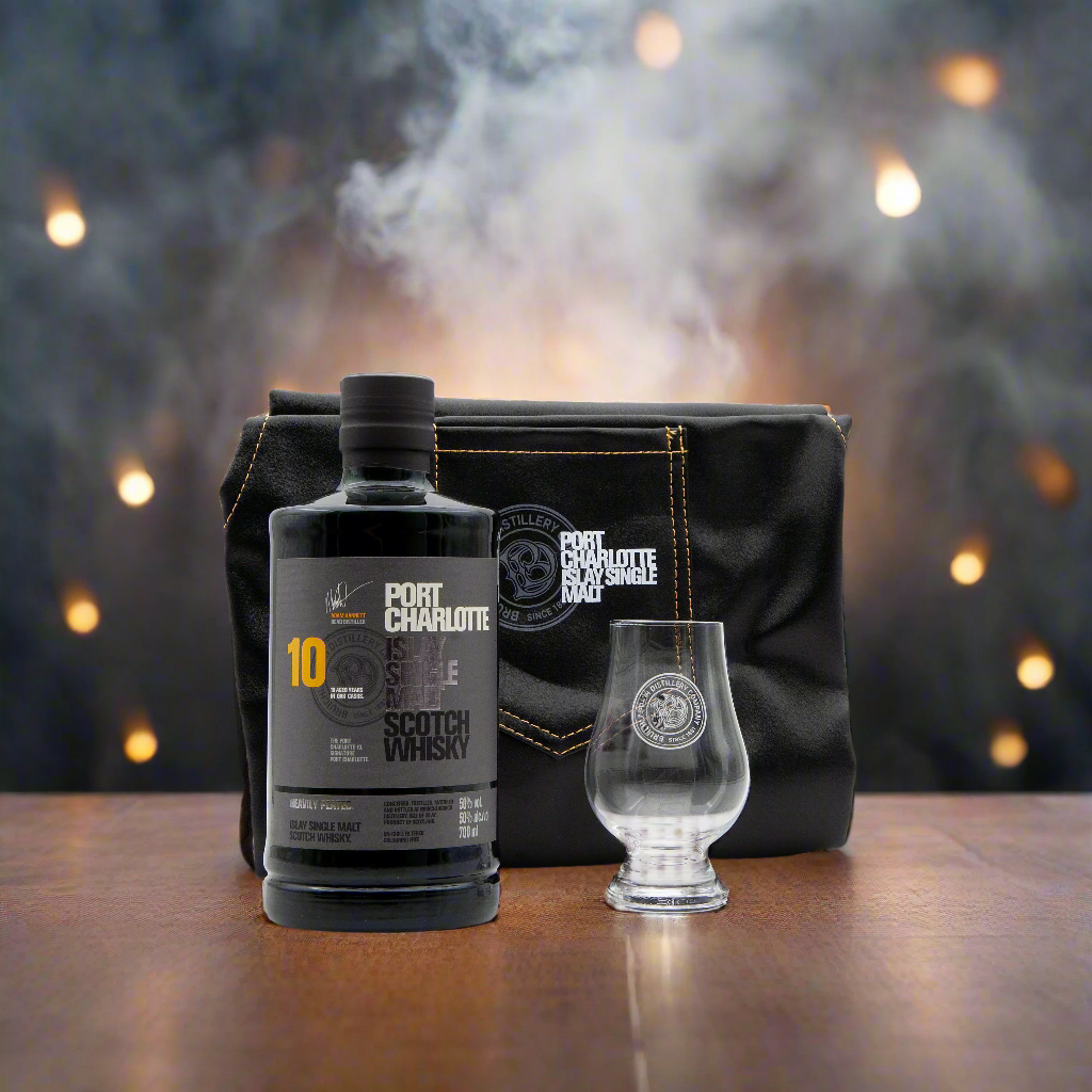 The Port Charlotte leather apron included in this whisky bundle is so impressive, very high quality and a must for any Bruichladdich fan. The glass speaks for itself, beautiful and the perfect companion to enjoy a wee nip of Port Charlotte whisky with.