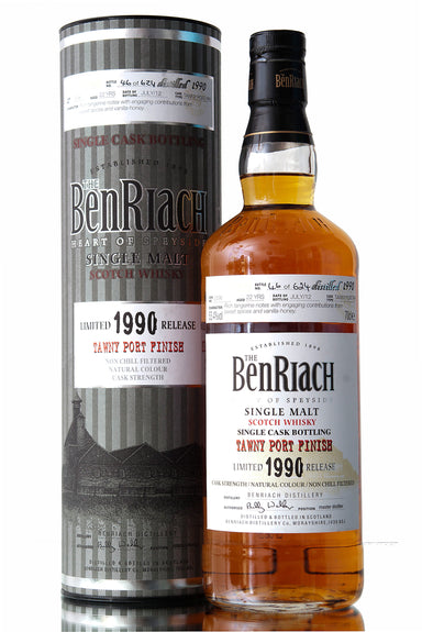 Speyside Single Malt Scotch WhiskyDistillery Bottling Benriach single cask #4000, distilled in 1988 and aged for 24 years. Given a tawny port finis...