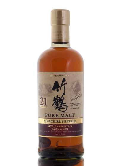 Japanese Blended Malt WhiskyDistillery BottlingNikka Taketsuru 21 year old, non-chill filtered edition, bottled in 2014 to celebrate the 80th anniv...