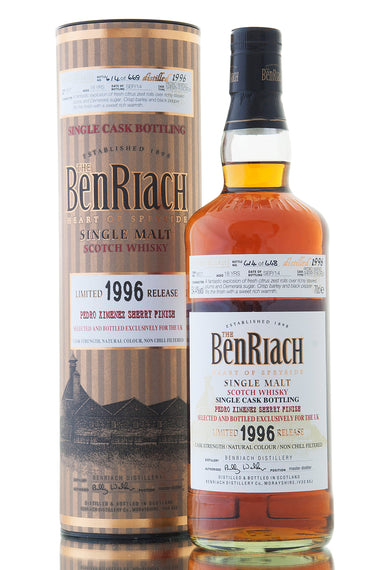 Single cask #3607, a UK Exclusive released by The BenRiach Distillery Co Ltd. Distilled in 1996 and aged in a Pedro Ximenez sherry puncheon for 18 ...
