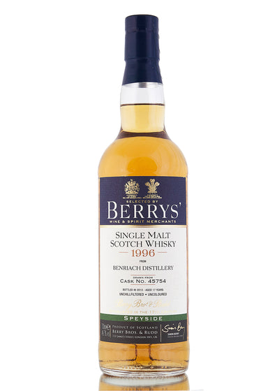 Speyside Single Malt Scotch WhiskyDistillery Bottling Benriach single cask #10306, distilled in 1996 and aged for a total of 17 years. Finished in ...