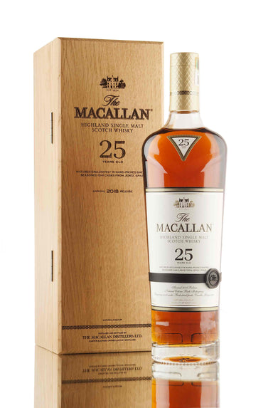 The 2018 annual release of Macallan 25 Year Old, matured exclusively in hand-picked, sherry seasoned oak casks from Jerez, Spain. New package and d...