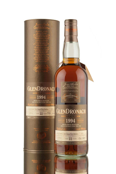 A single sherry cask from GlenDronach distillery, bottled exclusively for the UK market. Distilled in 1994 and matured in cask #1376 (PX Sherry Pun...