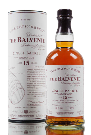 Matured exclusively in a European oak sherry butt, Balvenie single barrel #16300 has been aged for at least fifteen years, bottled at 47.8% vol.