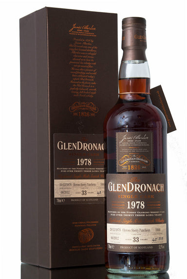 Glendronach single cask 1068, a 33 year old single malt whisky from Glendronach distillery. Distilled in 1978 and aged in an Oloroso Puncheon befor...