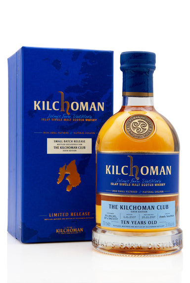 Kilchoman Club Sixth Edition, a vatting of five fresh bourbon barrels, all distilled 1st November 2007 and matured in cask for just over 10 years. ...