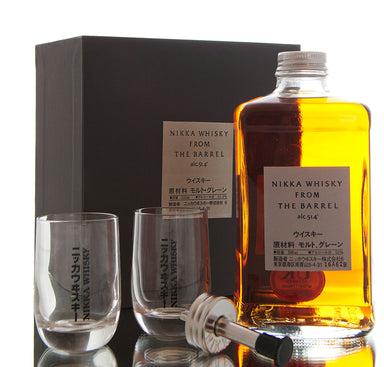 A rather stylish whisky glass gift pack containing a great combination of Japanese grain whisky distilled in a Coffey still and a Nikka branded tas...