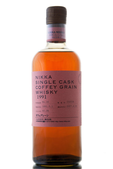Japanese Single Grain WhiskyDistillery BottlingA single cask coffey grain whisky from Nikka Distillery. Distilled in 1991 and left to mature for 1...