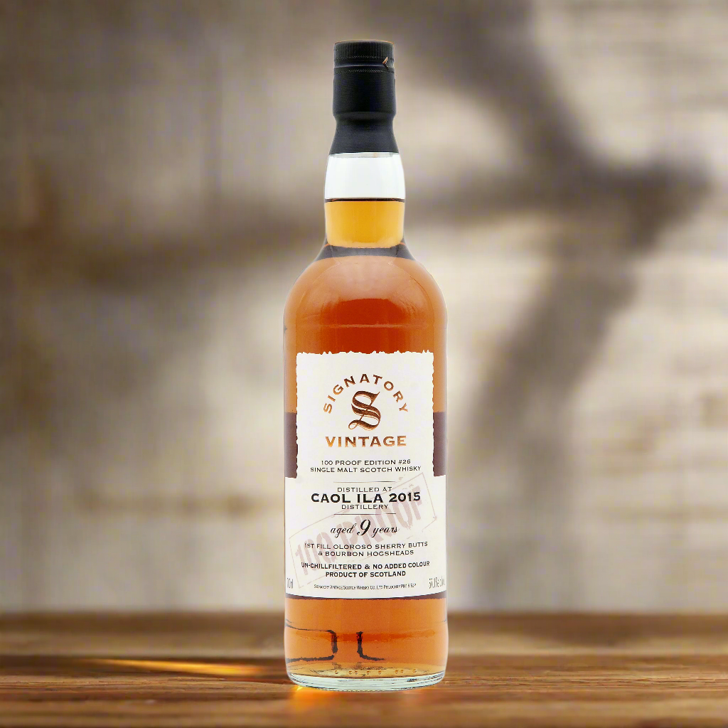Another superb dram released as part of the impressive 100 proof series from independent Scotch whisky bottler, Signatory. Distilled in 2015 at the Caol Ila distillery and matured for 9 years in a combination of 1st fill Oloroso sherry butts and bourbon hogsheads, then bottled at the Edradour distillery at 57.1% vol, un-chillfiltered and without any additional colouring.