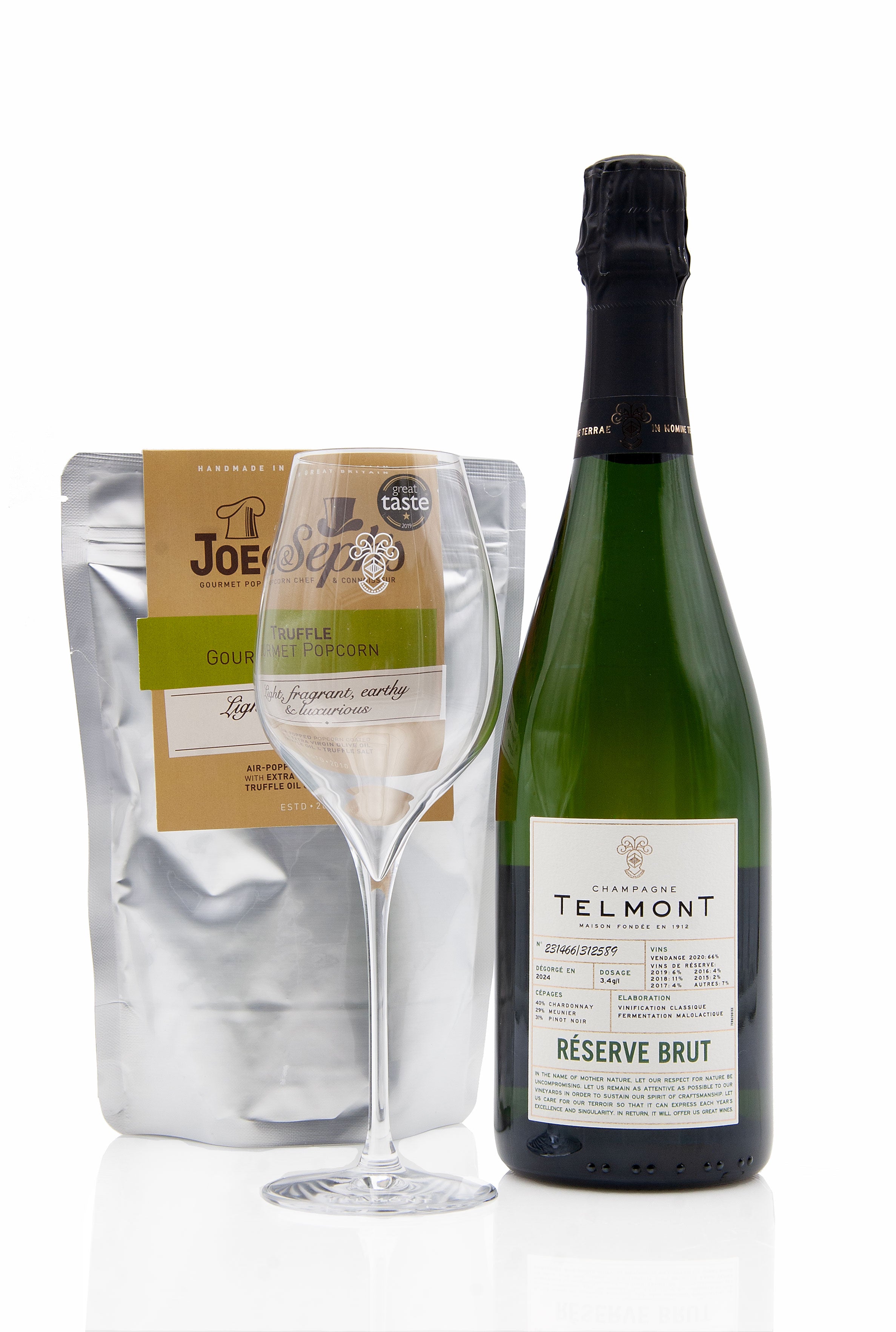 Champagne Telmont Réserve Brut 1 x 75cl - This multi-award winning Champagne is a subtle marriage of the three Champagne grape varieties (Chardonnay, Meunier and Pinot Noir), a beautifully balanced wine with a perfect harmony or richness, fruitiness and freshness. Full transparency with all the details on the label, which so great to see. It also happens to taste wonderful.