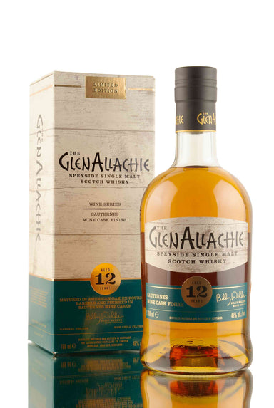 Released as part of the latest single malt series from Billy Walker and his team at GlenAllachie distillery. A 12 year old whisky, initially matured in American ex-bourbon barrels, then transferred and given a secondary maturation in Sauternes Barriques. Bottled at 48% vol, waves of heather honey, peaches and grapefruit, with hints of cinnamon and almonds.