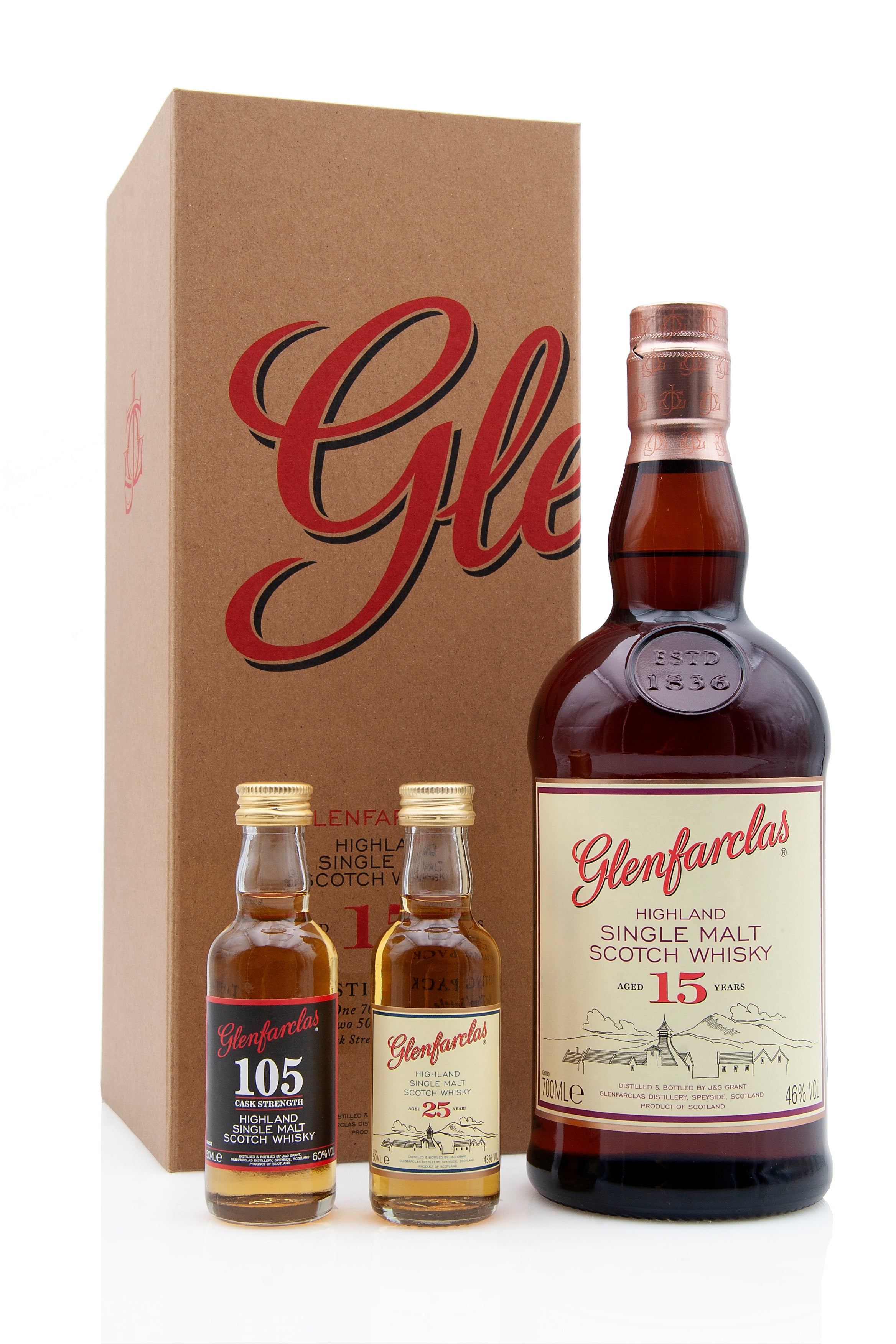 Zoom icon Click to expand Tap to zoom Chevron down icon Chevron down icon Glenfarclas 15 Year Old Tasting Pack with 25 & 105 Miniatures by Glenfarclas Sold out 1 2 3 4 5 6 7 8 9 10+ Quantity Chevron down icon Quantity Sold out Spinner icon FOLLOW US FOR THE LATEST RELEASES VIA Instagram, Facebook & Twitter A fabulous gift pack from Glenfarclas distillery, which includes a 70cl bottle of Glenfarclas 15 Year Old along with a 1 x 5cl miniature of both Glenfarclas 105 Cask Strength and Glenfarclas 25 Year Old! Distillery Glenfarclas Age 15 Region Speyside ABV (Strength) 46 Cask Type Sherry Casks Bottle Size 70cl + 2 x 5cl Style Single Malt Scotch Whisky Barcode 5018066220015 Tasting Notes Awards
