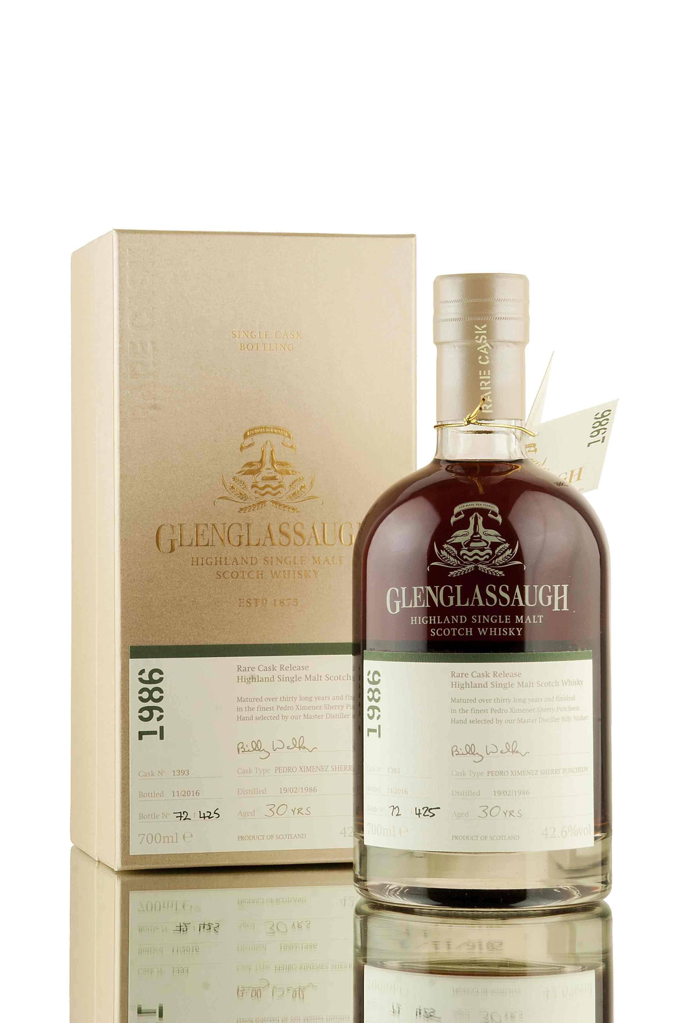 A delightful single cask bottling released as part of Batch 3 from Glenglassaugh's Rare Cask series. Distilled in 1986 and matured in a Pedro Ximénez sherry puncheon for 30 years, then bottled at natural cask strength, with an outturn of only 425 bottles filled.