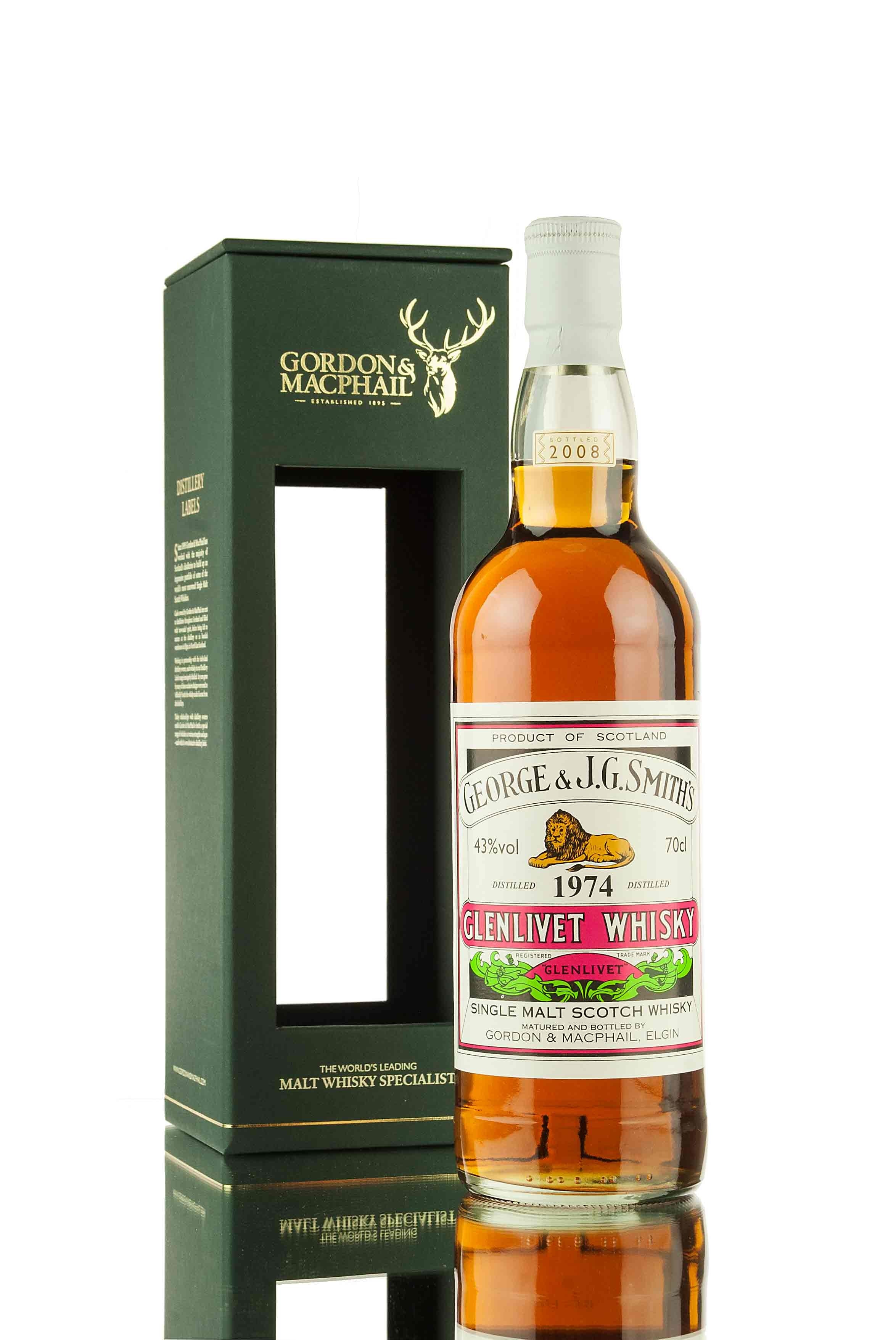 Zoom icon Click to expand Tap to zoom Chevron down icon Chevron down icon Glenlivet 1974 - Bottled 2008 | Gordon & MacPhail by vendor-unknown Sold out 1 2 3 4 5 6 7 8 9 10+ Quantity Chevron down icon Quantity Sold out Spinner icon FOLLOW US FOR THE LATEST RELEASES VIA Instagram, Facebook & Twitter A rare 1974 vintage Glenlivet, bottled in 2008 by Independent Scotch whisky gurus Gordon & MacPhail. Distillery Glenlivet Vintage 1974 Region Speyside ABV (Strength) 43 Bottling Date 2008 Bottle Size 70cl Style Speyside Single Malt Scotch Whisky Bottler Gordon & MacPhail Country Scotland Tasting Notes Awards