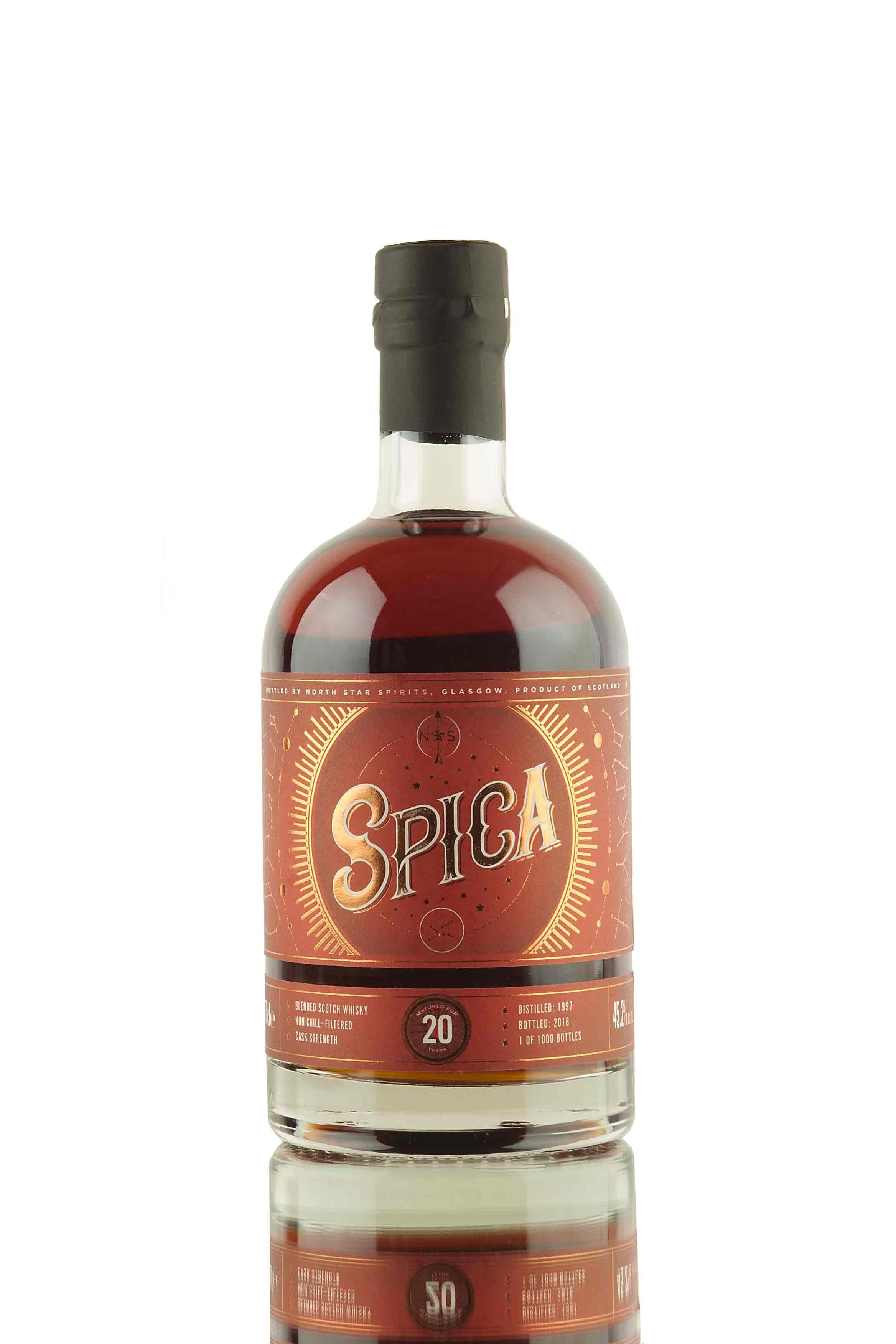 Zoom icon Click to expand Tap to zoom Chevron down icon Chevron down icon Spica 20 Year Old - 1997 | North Star Spirits by vendor-unknown Sold out 1 2 3 4 5 6 7 8 9 10+ Quantity Chevron down icon Quantity Sold out Spinner icon FOLLOW US FOR THE LATEST RELEASES VIA Instagram, Facebook & Twitter Oh, a lovely new blended Scotch whisky from North Star Spirits! Distilled in 1997 and matured for over 20 years, this new limited edition release has been named Spica, after the 16th brightest star in the sky (250 light years from Earth!). Age 20 Vintage 1997 ABV (Strength) 45.2 Bottling Date 2018 Bottle Size 70cl Cask Strength Yes No. of Bottles 1000 Series Cask Series 005 Style Blended Scotch Whisky Bottler North Star Spirits Country Scotland Tasting Notes Awards