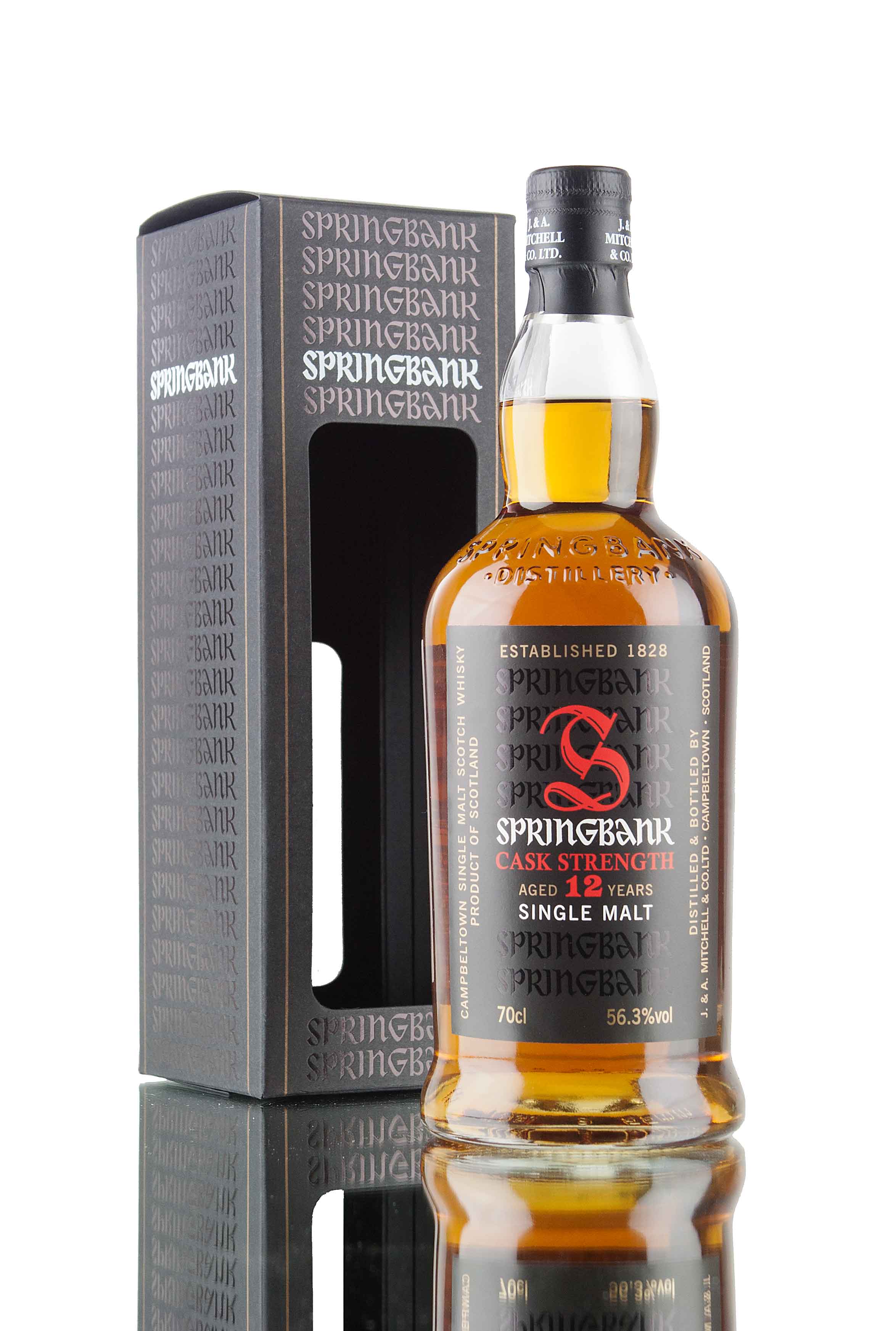 Zoom icon Click to expand Tap to zoom Chevron down icon Chevron down icon Springbank 12 Year Old Cask Strength - 56.3% by Springbank Sold out 1 2 3 4 5 6 7 8 9 10+ Quantity Chevron down icon Quantity Sold out Spinner icon FOLLOW US FOR THE LATEST RELEASES VIA Instagram, Facebook & Twitter Bottled at 56.3%, this is the latest cask strength offering from Springbank distillery - aged for 12 years and created from 70% ex-sherry casks and 30% ex-bourbon casks. Distillery Springbank Age 12 Region Campbeltown ABV (Strength) 56.3 Bottling Date 2016 Bottle Size 70cl Cask Strength Yes Series Springbank Cask Strength Style Campbeltown Single Malt Scotch Whisky Bottler Distillery Bottling Country Scotland Tasting Notes Awards